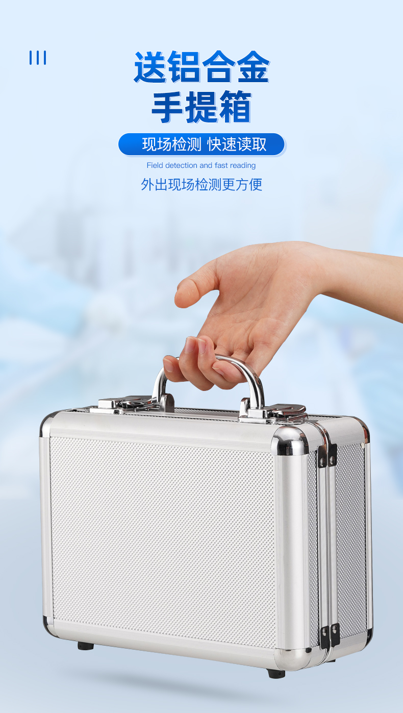 隨機配置:ATP熒光檢測儀(手持)主機、鋁合金手提箱、驅動U盤、儀器包、掛繩、PC數據線、數據分析軟件、中文操作手冊