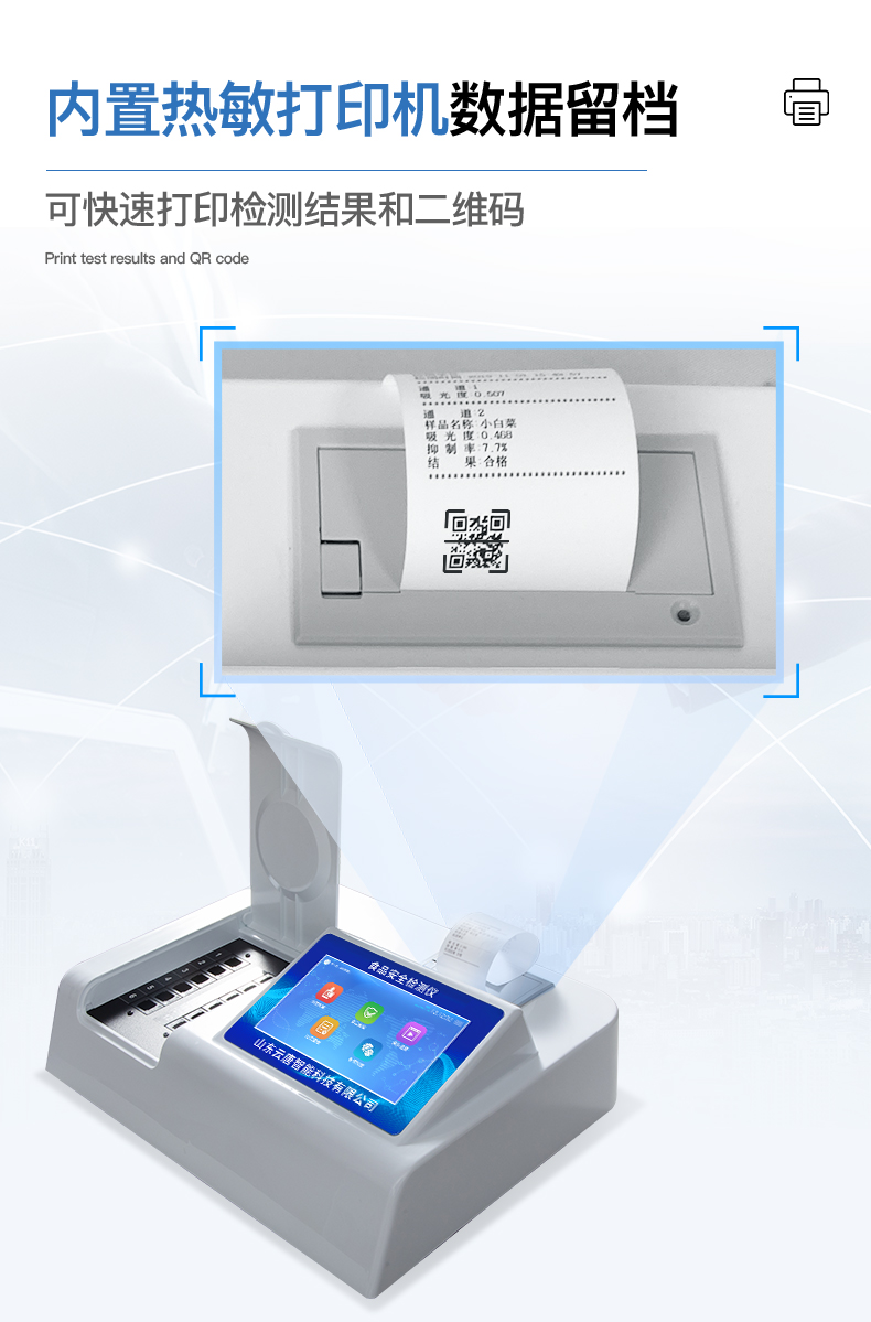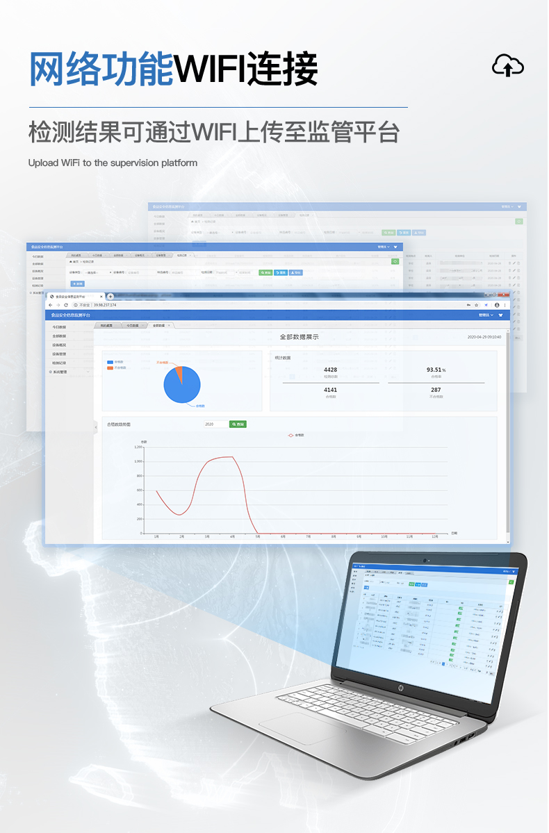 12、儀器具有 wifi 聯網上傳、RJ45網線連接功能,可以快速上傳數據。同步對接監管平臺,數據可局域網和互聯網數據上傳,檢測結果直接傳至食品安全監管平臺。進行區域食品安全監管及大數據分析處理與數據統計,檢測區域食品安全長短期動態,達到食品安全問題預估、預警。