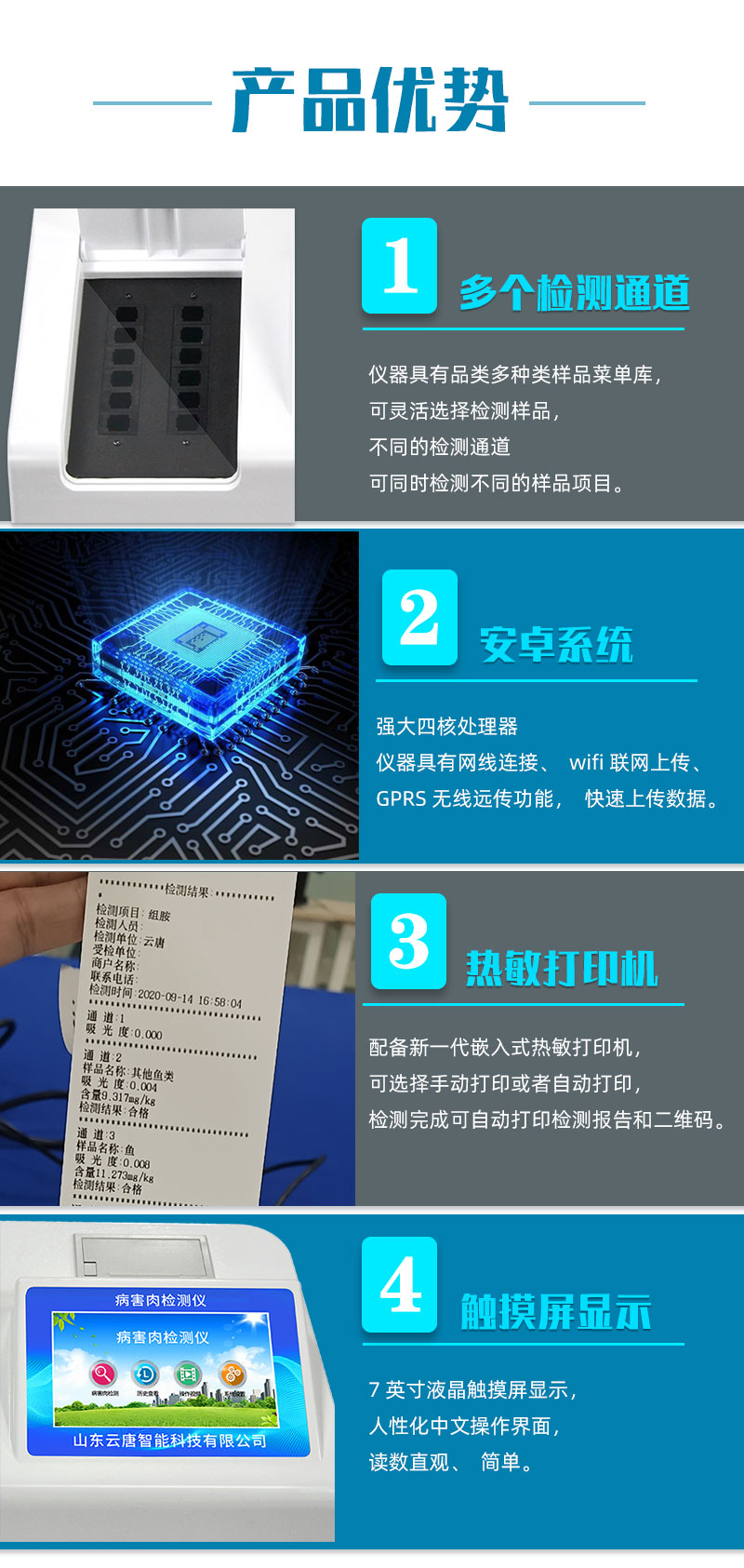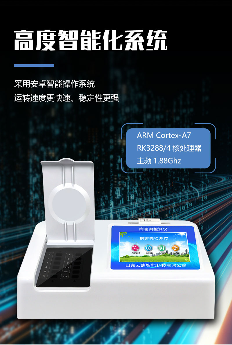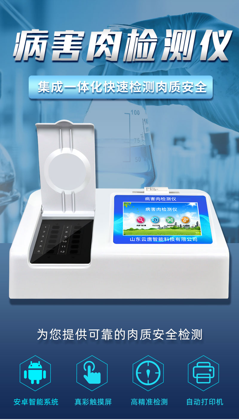 病害肉檢測儀產品用途:該多功能食品安全檢測儀為集成一體化食品安全快速檢測分析設備,廣泛應用于食藥監局、衛生部門、高教院校··· 熱線:133-7109-8225