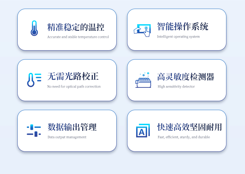 | 1.智能操作系統,實驗盡在掌握 | A雙模式靈活控制:支持通過儀器觸摸屏獨立運行,也支持通過電腦軟件進行遠程控制與數據管理,適應不同實驗場景需求。 | B程序更新與預設:支持在線更新實驗程序,并內置豐富的預設實驗程序模板,用戶亦可自定義保存常用模版,實現一鍵快速啟動,極大提升操作效率。 | C極簡啟動體驗(可選配):可定制集成攝像頭掃描系統,用戶只需掃描樣品板或程序卡的二維碼,即可自動識別并調用對應實驗程序,簡化流程,避免人為設置錯誤。 | D操作簡單:無論是觸摸屏界面還是電腦軟件,均設計得直觀易懂,新用戶也能快速上手。預置常用程序模板,進一步簡化操作流程。 | 2.精準穩定的溫控與光學核心 | A長久精準的溫控系統:采用進口***TEC半導體制冷模塊,控溫精準(±0.1°C),孔間溫度均勻性**(≤±0.3°C)。系統穩定性卓越,長期使用性能衰減小,校準周期長達數年,顯著降低維護成本與運營中斷。 | B免維護的靈敏光學系統:配備4個獨立LED光源與4個獨立光電二極管檢測器,實現四通道熒光同步精準檢測。采用超長壽命進口光源,設計壽命期內免維護,無需額外校準或更換,保障檢測結果長期一致性與高靈敏度。 | C卓越的數據質量:實驗線性相關性高(R2≥0.999),重復性優異(孔間CV值低),確保定量結果準確可靠,數據置信度高。 | 3.**便捷的數據與輸出管理 | A多重數據導出方式:支持通過USB存儲設備直接拷貝,或經由Wi-Fi無線網絡傳輸數據至本地服務器或云端,方便靈活,滿足各類實驗室數據管理習慣。 | B豐富的報告導出與打印:支持生成并導出多種格式(如PDF、Excel)的實驗報告。儀器兼容USB熱敏打印機、藍牙無線打印機及常規A4打印機,可直接在儀器上或通過電腦一鍵導出并打印專業報告,便于結果存檔與即時分享。 | 4.快速**與堅固耐用 | A升降溫速度快:優化設計的溫控系統具備高速升降溫能力,顯著縮短單次循環與整體檢測時間,提升實驗通量。 | B超長使用壽命:核心部件均選用工業級耐用材料與設計,整機運行穩定可靠,致力于為用戶提供長久的投資回報。 | 三、應用場景基礎科學研究、病原體檢測、肉制品摻假、轉基因檢測、食品安全檢測、藥物開發及合理用藥、基因表達、水體監測、松材線蟲檢測、寵物檢測、養殖業疫病檢測 |