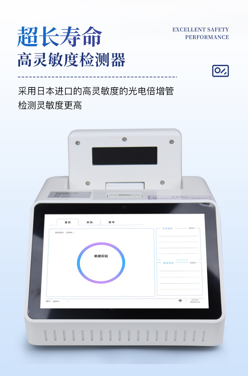 | 1.智能操作系統(tǒng),實驗盡在掌握 | A雙模式靈活控制:支持通過儀器觸摸屏獨立運行,也支持通過電腦軟件進行遠程控制與數(shù)據(jù)管理,適應(yīng)不同實驗場景需求。 | B程序更新與預設(shè):支持在線更新實驗程序,并內(nèi)置豐富的預設(shè)實驗程序模板,用戶亦可自定義保存常用模版,實現(xiàn)一鍵快速啟動,極大提升操作效率。 | C極簡啟動體驗(可選配):可定制集成攝像頭掃描系統(tǒng),用戶只需掃描樣品板或程序卡的二維碼,即可自動識別并調(diào)用對應(yīng)實驗程序,簡化流程,避免人為設(shè)置錯誤。 | D操作簡單:無論是觸摸屏界面還是電腦軟件,均設(shè)計得直觀易懂,新用戶也能快速上手。預置常用程序模板,進一步簡化操作流程。 | 2.精準穩(wěn)定的溫控與光學核心 | A長久精準的溫控系統(tǒng):采用進口***TEC半導體制冷模塊,控溫精準(±0.1°C),孔間溫度均勻性**(≤±0.3°C)。系統(tǒng)穩(wěn)定性卓越,長期使用性能衰減小,校準周期長達數(shù)年,顯著降低維護成本與運營中斷。 | B免維護的靈敏光學系統(tǒng):配備4個獨立LED光源與4個獨立光電二極管檢測器,實現(xiàn)四通道熒光同步精準檢測。采用超長壽命進口光源,設(shè)計壽命期內(nèi)免維護,無需額外校準或更換,保障檢測結(jié)果長期一致性與高靈敏度。 | C卓越的數(shù)據(jù)質(zhì)量:實驗線性相關(guān)性高(R2≥0.999),重復性優(yōu)異(孔間CV值低),確保定量結(jié)果準確可靠,數(shù)據(jù)置信度高。 | 3.**便捷的數(shù)據(jù)與輸出管理 | A多重數(shù)據(jù)導出方式:支持通過USB存儲設(shè)備直接拷貝,或經(jīng)由Wi-Fi無線網(wǎng)絡(luò)傳輸數(shù)據(jù)至本地服務(wù)器或云端,方便靈活,滿足各類實驗室數(shù)據(jù)管理習慣。 | B豐富的報告導出與打印:支持生成并導出多種格式(如PDF、Excel)的實驗報告。儀器兼容USB熱敏打印機、藍牙無線打印機及常規(guī)A4打印機,可直接在儀器上或通過電腦一鍵導出并打印專業(yè)報告,便于結(jié)果存檔與即時分享。 | 4.快速**與堅固耐用 | A升降溫速度快:優(yōu)化設(shè)計的溫控系統(tǒng)具備高速升降溫能力,顯著縮短單次循環(huán)與整體檢測時間,提升實驗通量。 | B超長使用壽命:核心部件均選用工業(yè)級耐用材料與設(shè)計,整機運行穩(wěn)定可靠,致力于為用戶提供長久的投資回報。 | 三、應(yīng)用場景基礎(chǔ)科學研究、病原體檢測、肉制品摻假、轉(zhuǎn)基因檢測、食品安全檢測、藥物開發(fā)及合理用藥、基因表達、水體監(jiān)測、松材線蟲檢測、寵物檢測、養(yǎng)殖業(yè)疫病檢測 |